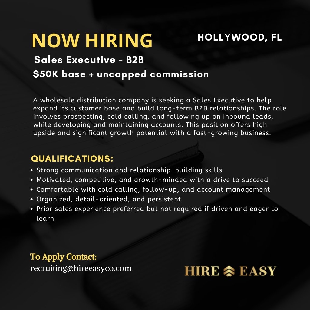 A Wholesale Distribution Company Is Seeking A Sales Executive To Help Expand Its Customer Base And Build Long-Term B2b Relationships. The Role Involves Prospecting, Cold Calling, And Following Up On Inbound Leads, While Developing And Maintaining Accounts. This Position Offers High Upside And Significant Growth Potential With A Fast-Growing Business.