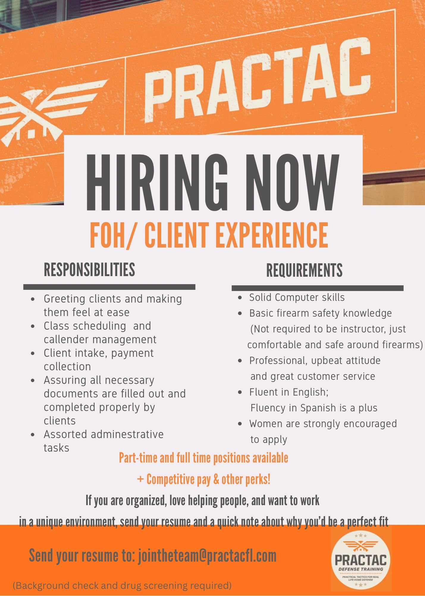 Send your resume to: jointheteam@practacfl.com