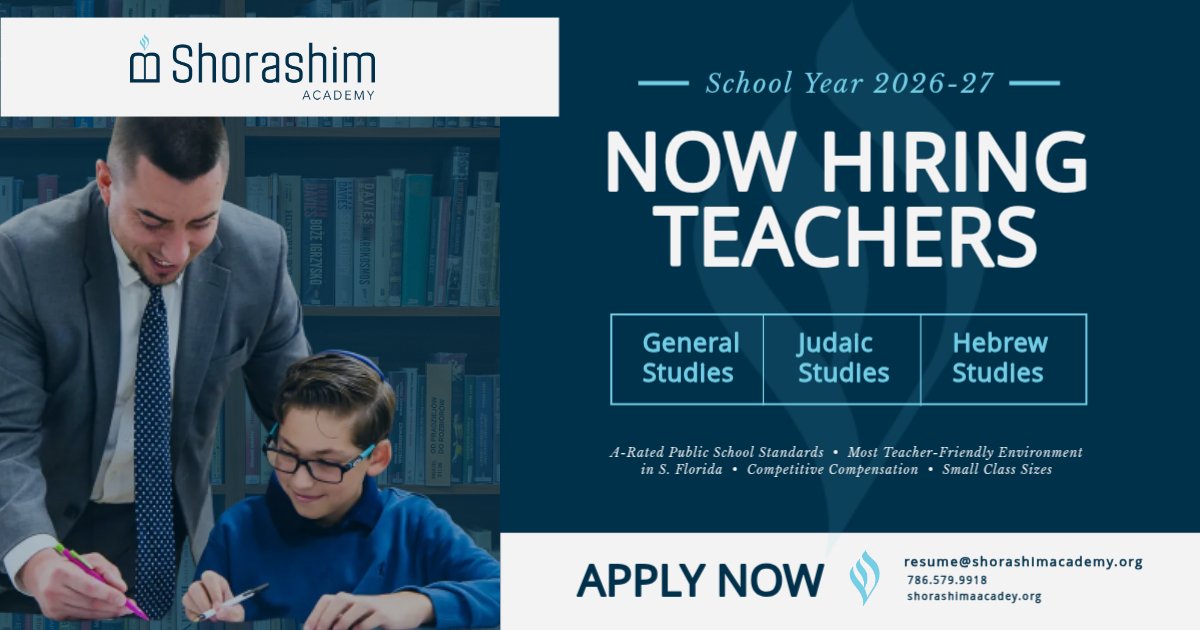 ’26-’27 School Year-General studies teacher; Judaics teacher; Ivrit teacher